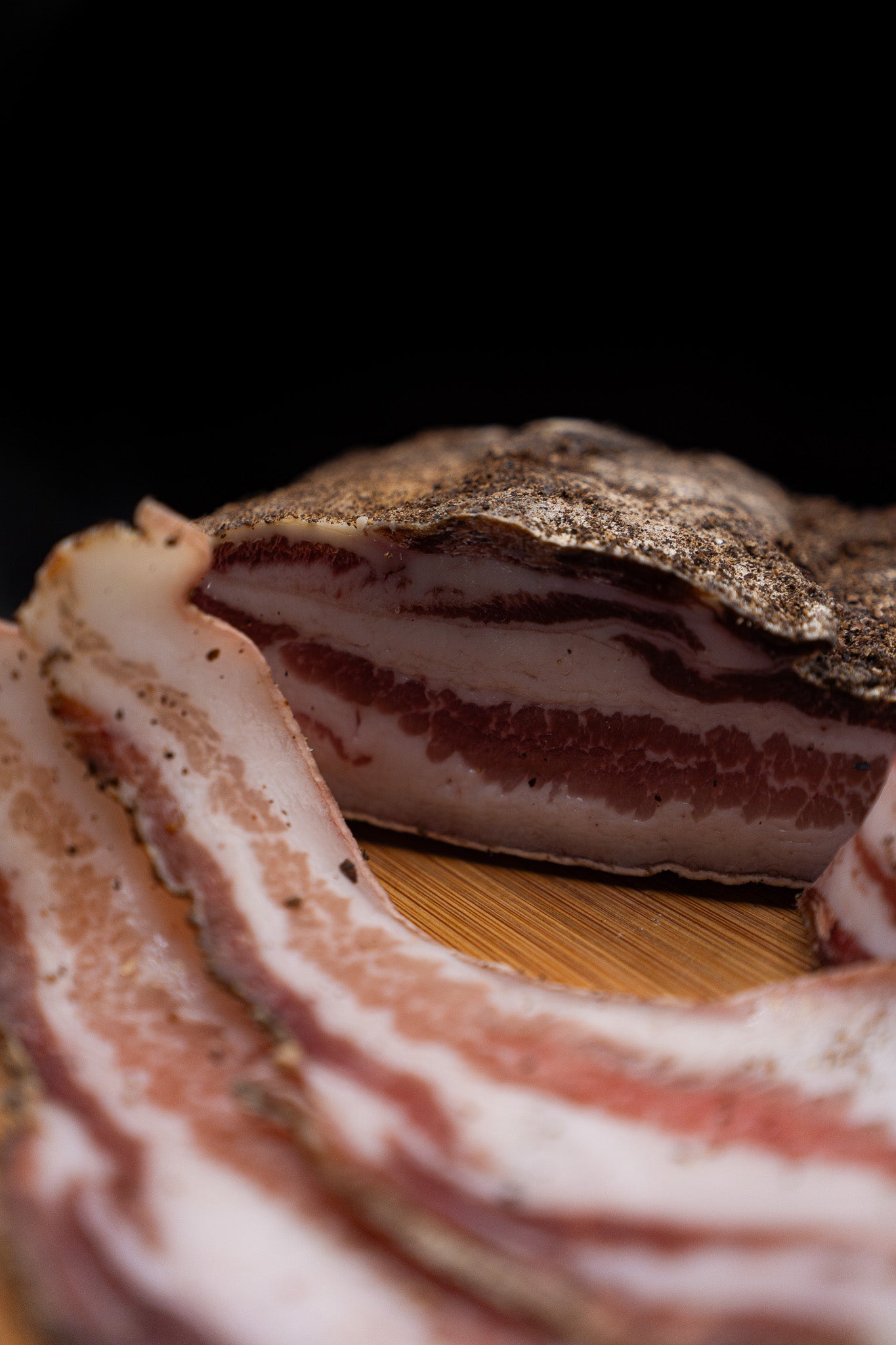 Reposada amb sal, rebossada en pebre i després cuidadosament assecada a la nostra cambra de secat, cada tros és una explosió de sabor.